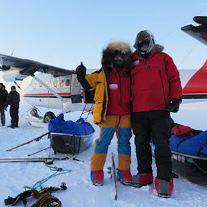 The Irish team of Mike O’ Shea and Clare O’ Leary were dropped off on Cape Discovery last Friday and have been making slow, but steady progress on their route to the North Pole. They've been covering approximately 5 km (3.1 miles) per day as they work their way through the region of rough ice that permeates the start of the route. That area is filled with massive ice boulders that are created when slabs of arctic ice smash into one another. Those boulders can be massive in size, and going around or over them while pulling a heavy sled can be extremely difficult. Fortunately, Mike and Clare hope to clear the ice field in another day or two, and hope to make up some ground once that happens. They've also been battling blizzard conditions early on, which hasn't made progress easy either.